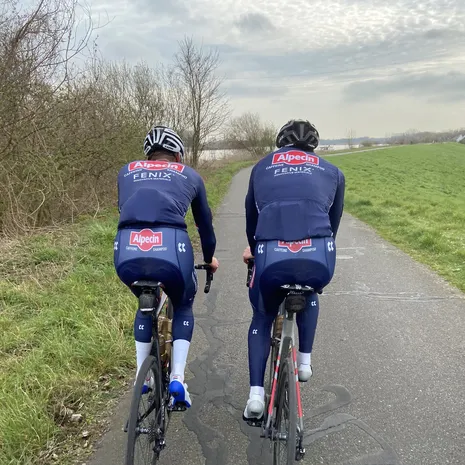Adrie van der Poel heeft, zoals het eruit ziet, een 'duurritje' gemaakt met zijn zoons. 128 kilometer met ruim 32 gemiddeld. Er rest ons wel één vraag: sokken over of onder de beenstukken? De familie van der Poel is niet eensgezind...