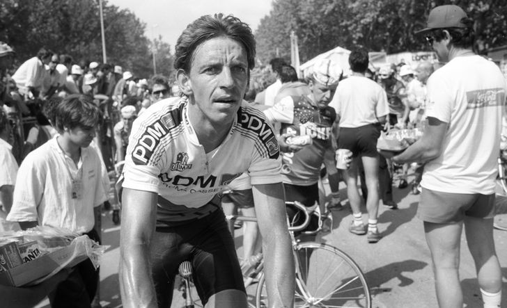 Op Sean Kelly, een soort mentor, kon ik niet terugvallen, want hij ontbrak wegens een tijdens Gent-Wevelgem opgelopen sleutelbeenbreuk.. Jostein Wilmann en Régis Clère raakten voorop. Stephen Roche demarreerde, ik in zijn wiel. Het duo Willman-Clère haalden we in. Vlak voor de Côte de Forges ging ik op kop rijden. De andere drie wisten het hoge tempo niet te volgen. Opeens motards en fotografen om me heen. Niet eerder meegemaakt. De laatste vijftien kilometer fietste ik de longen uit m’n lijf. Twijfels spookten door mijn hoofd. Aan de andere kant: ik barstte deze superdag van zelfvertrouwen, van 35 seconden zakte mijn voorsprong naar 10 seconden, maar de groep-Saronni pakte me niet meer terug. Wat er bij het passeren van de streep door je heen schiet, valt niet anders te beschrijven dan euroforisch. Ongekend geluksgevoel. Na de huldiging heeft de ploegleider me naar Vilvoorde vervoerd, naar het huis van Sean Kelly. Vandaaruit reed ik met mijn auto naar mijn ouders in Heerhugowaard.”