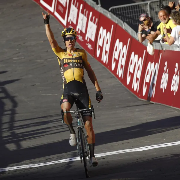 De kopman van Team Jumbo-Visma reed beetje bij beetje verder weg van zijn concurrenten, maar Formolo en Schachmann kwamen na verloop van tijd toch dichter en dichter. De aansluiting leek gemaakt te gaan worden, maar op een typisch Van Aert stuk reed de Belg toch weer verder weg van de twee klimmers. Vervolgens was de samenwerking tussen de achtervolgers niet ideaal meer en fietsten ze voornamelijk voor de tweede plaats. Onbedreigd reed Van Aert, ondanks de immens zware slotkilometer, naar de zege bij de herstart van de WorldTour.