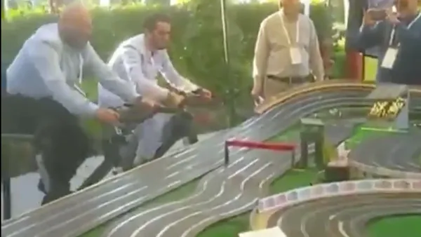 Ken je die speelgoedracebanen nog waarin je met zo'n pistooltje in je hand je autootje over het parcours joeg - en meestal uit de bocht vloog omdat je te veel gas gaf? Nou, die autootjes kunnen natuurlijk ook aangedreven worden door mensen die zich het schompes fietsen op een indoortrainer... Watopia en de andere werelden in Zwift zijn leuk, maar niks haalt het bij jezelf helemaal te pletter rijden op een ding dat nostalgische gevoelens oproept. In het filmpje hieronder zie je hoe het eraan toegaat!
