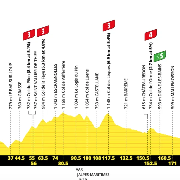 Nog nooit eerder was Sisteron een finishplaats in de Tour de France. Wel was de aankomst vaak in Sisteron getrokken tijdens Parijs-Nice. Onder anderen Laurent Jalabert, Andrei Tchmil en Alex Zülle kwamen eens winnend over de streep in Sisteron. Grote namen op de erelijst dus. De laatste keer dat een etappe in Parijs-Nice eindigde in de stad met de bekende citadel, was in 2018. Wellicht biedt die rit hoop aan de vluchters, want dat jaar ging de zege naar aanvaller Jerôme Cousin.