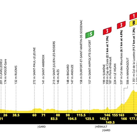De parkoersbouwers van de Tour de France moeten gedacht hebben: twee ‘saaie’ sprintdagen achter elkaar; dat moeten we deze editie niet hebben. Nadat de sprinters/punchers een kans kregen in Privas, is het weer aan de klimmers. De koersorganisatie omschrijft de etappe als een heuvelachtige, maar de slotfase is toch echt serieus klimmen. Niet op grote hoogte of op hele steile wegen, maar het is zwaar genoeg om verschillen te maken op weg naar Mont Aigoual.