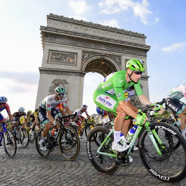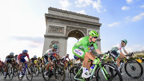 De slotrit van een spectaculaire Tour, toch zeker na de overname van Tadej Pogacar gisteren, verliep wel normaal: Eenmaal in Parijs ging het tempo flink de hoogte in en reed er een groepje weg. Het was een groepje met sterke renners (Van Avermaet, Schachmann, Swift en Périchon), maar ook zij waren niet bestand tegen het door Parijs razende peloton.