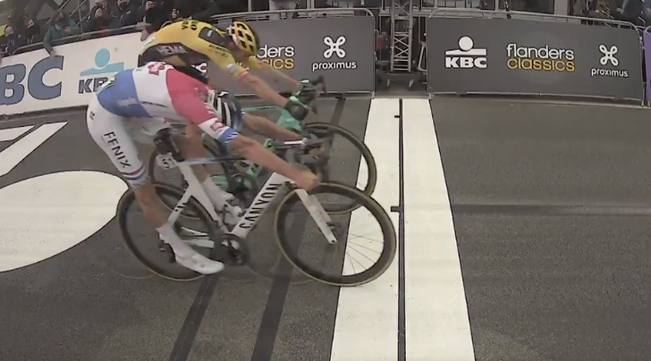 Na z'n verprutste sprint in de Brabantse Pijl zal Mathieu van der Poel gedacht hebben: 'zoiets gaat me in ieder geval niet nog een keer gebeuren'. En dat kun je wel aan VDP overlaten: het gebeurde niet nog een keer. Sterker nog, wat mij betreft reed Mathieu de perfecte sprint. Totale focus, het leek haast computergestuurd. Alles klopte. Een analyse in vier fases.