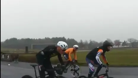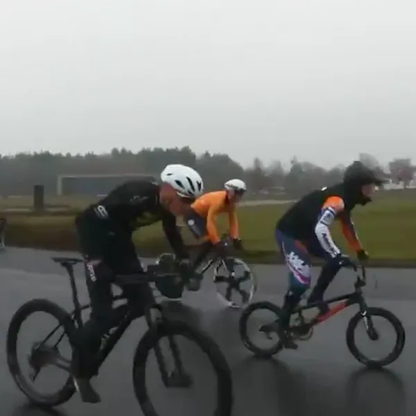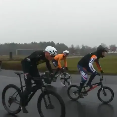 Tijd voor een leuk experiment, moeten de verschillende fietsers op Papendal gedacht hebben. Daar reden onlangs baansprinter Jeffrey Hoogland, BMX'er Justin Kimman (broertje van Nick) en mountainbiker Jeroen van Eck een wedstrijdje tegen elkaar, ieder op hun eigen fiets.
