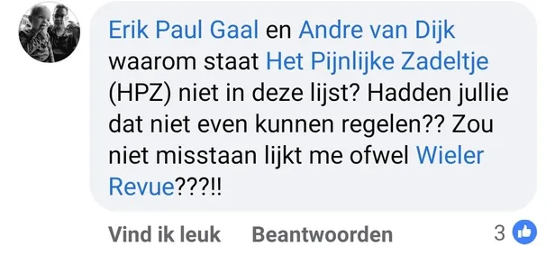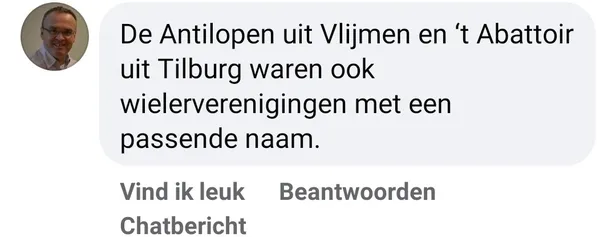 Maar dat bleek bij lange na geen volledig lijstje. Via Facebook en andere kanalen bereikten ons nog talloze wielerclubs met namen die - ik geef dat graag toe - zeker niet misstaan hadden in de Top 15. Om dat recht te zetten, vind je hier de pareltjes die ingestuurd werden door de lezers...