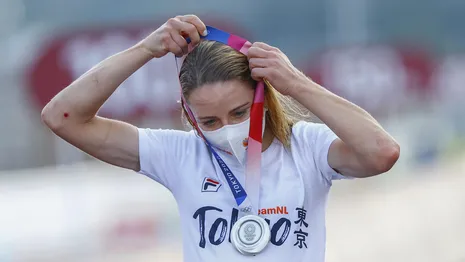 Maar over haar rijden zelf is ze wel te spreken. "Het was mijn doel om in mijn best mogelijke vorm in Tokyo aan de start te verschijnen. Dat is sowieso gelukt. Kijkend naar de situatie die in koers was ontstaan en hoe ik reed, kan ik mezelf niets verwijten. Ik heb een dijk van een koers gereden, waar ik een zilveren medaille heb uitgesleept."
