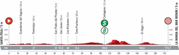 Het eerste gedeelte van de etappe verloopt volledig langs de kust. Na een lusje door de stad Cartagena keert het peloton weer richting zee. Finishplaats La Manga del Mar Menor is een landstrook gelegen in zee. De strook land scheidt het grootste zoutwatermeer van Europa met de Middellandse Zee.