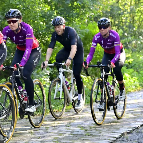 Gisteren toog de als altijd sterke SD Worx-ploeg voor een verkenning naar de stenen rond Roubaix. De NOS was erbij en sprak onder andere kanshebster Chantal Van den Broek-Blaak én voormalig kasseienklasbak Lars Boom, die nu ploegleider is van de dames (zoals je op de foto ziet, reed Boom zelfs mee in de verkenning).