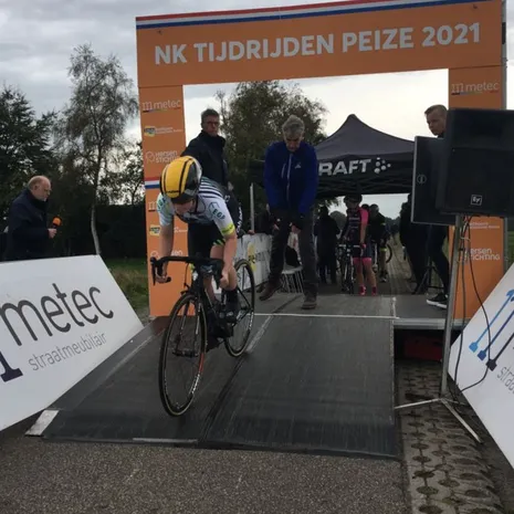 Maar ze doen meer dan dat, want afgelopen weekend was het NK tijdrijden in het Drentse Peize voor de jongste wielrenners in ons land (de junioren en de nieuwelingen) en daar prijkte de naam van Metec op de reclame-uitingen.