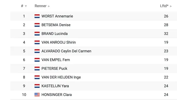 Uiteindelijk was Annemarie Worst de sterkste van die vrouwen. Ze schudde Denise Betsema twee rondes voor het einde af. Lucinda Brand was toen al in de achtervolging gedwongen en werd achter Worst en Betsema derde.