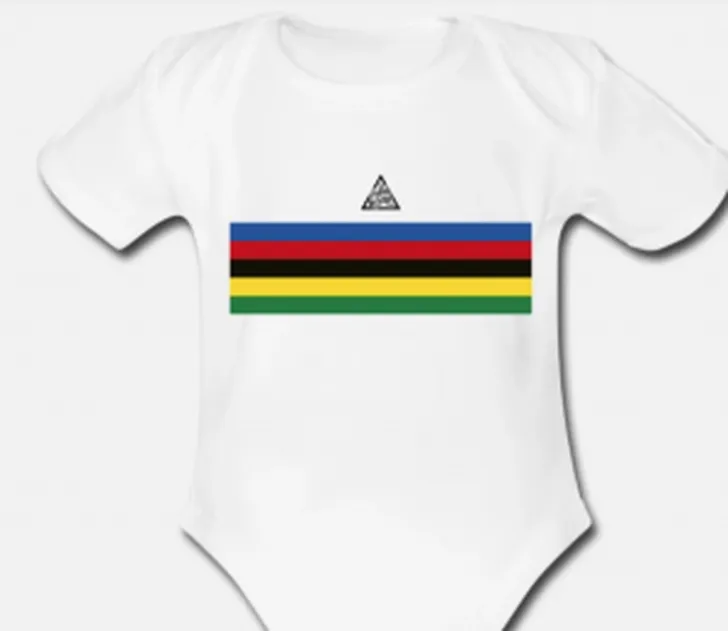 5) Heeft de fietsliefhebber net een kind? Deze regenboogromper!