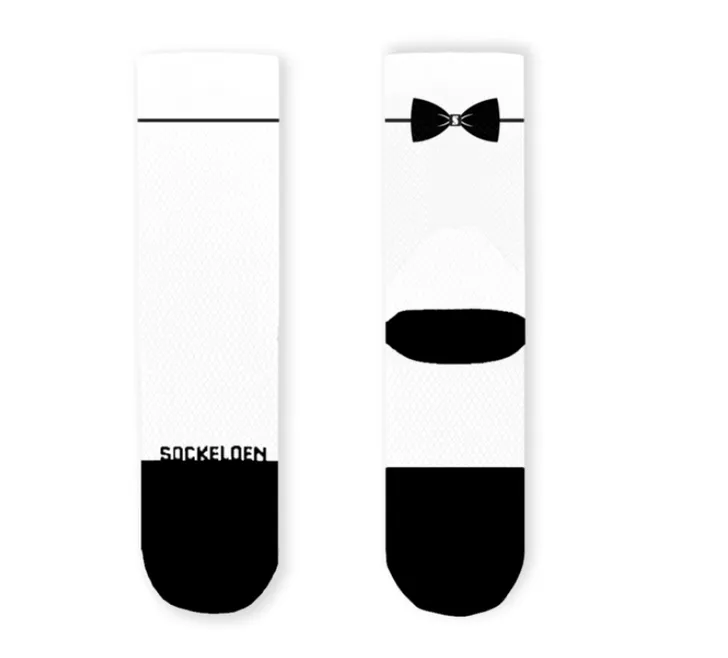 Hieronder drie varianten, maar google op 'funny cycling socks' en er gaat een wereld voor je open (soms ook een heel verdorven wereld, maar er zitten ook echt grappige bij!) Deze van Sockeloen zijn bijvoorbeeld geschikt voor de stijlvolle kerstdagen!