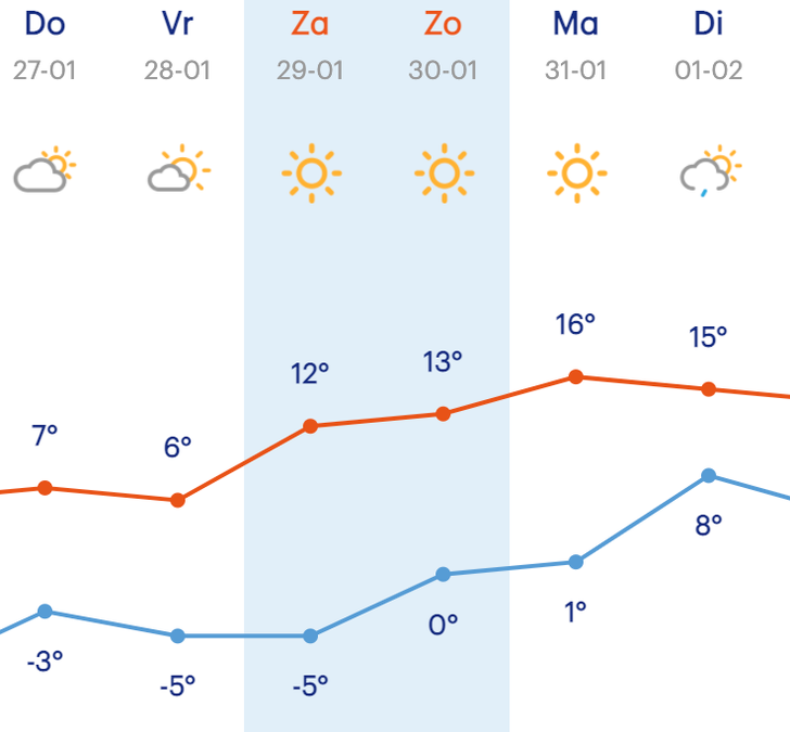 Op zondag, als de junioren jongens, beloften vrouwen en elite mannen rijden, daalt het kwik 's nachts minder hard en blooft het ook een graadje warmer te worden. Dit alles net als zaterdag onder een stralende zon.