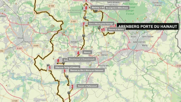 Die laatste is de negende strook van de dag, waarna er vervolgens nog twee volgen vooraleer de renners finishen in Arenberg. De laatste kasseienweg is de Hasnon à Wallers, die eindigt op ruim vijf kilometer van de meet.