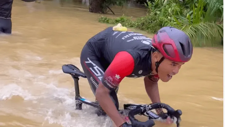 Wie dacht dat het de afgelopen tijd veel regent in Nederland en zich op de fiets dus een weg moet banen over natte wegen en door plassen zal hieronder zien dat het altijd erger kan.