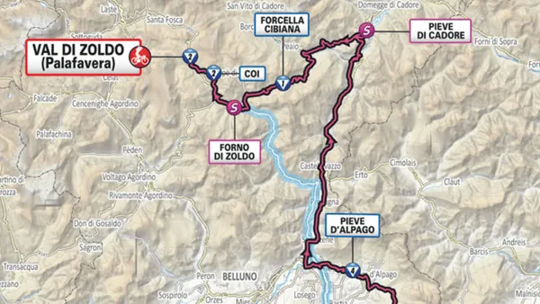 Na de Cadore-vallei moeten de renners nog een paar lastige klimmen over. De Forcella Cibiana en de nooit eerder beklommen klim van Coi, waarna het even afdalen is alvorens de bijna drie kilometer lange klim naar aankomstplaats Val di Zoldo volgt.