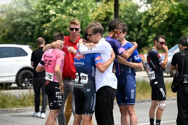 Na het tragische overlijden van Gino Mäder, heeft de organisatie beslist dat er vandaag niet meer gekoerst wordt in de Ronde van Zwitserland. De renners zullen met de bus richting aankomst rijden, waar ze de laatste 30 kilometer onder neutralisatie gaan afleggen. Dat was de wens van de familie van Gino Mäder.