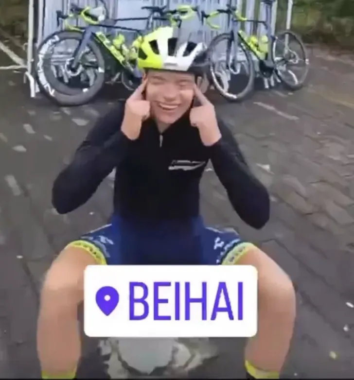 De feiten speelden zich af daags voor de eerste etappe. Thijssen deelde een video op Instagram, waarin zijn Estse ploegmakker tijdens een training spleetogen nabootste. Mihkels had naar alle waarschijnlijkheid geen kwade bedoelingen, maar in China zijn ze er wel gevoelig voor. (Lees verder onder de foto)