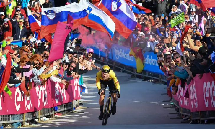1) Uitzinnige Sloveense fans schreeuwen Primoz Roglic op Monte Lussari naar eindwinst in de Giro d'Italia