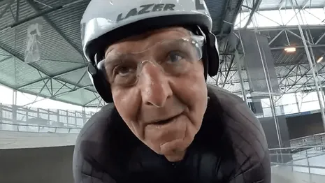 En daarvoor moeten we bij de 81-jarige Belg Herman Derdin zijn. Hij verbrak vorig jaar al het Belgisch uurrecord in de categorie 80-84 door in een uur toen net geen 38 kilometer af te leggen op de wielerbaan.