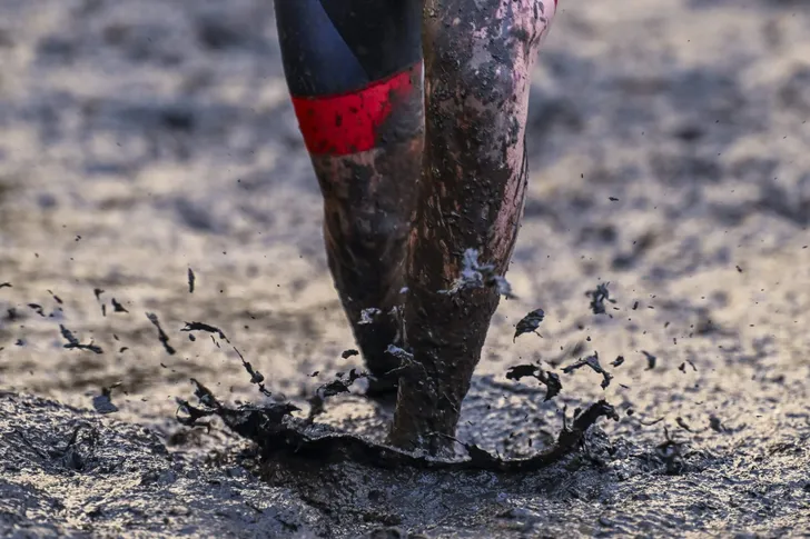En 'enorm zwaar' is in dit geval een eufemisme voor 'één groot ellendig modderbad'. Vanaf ronde één elke keer weer door dat moeras. Want dat was het een. Je hebt zandcrossen, weidecrossen, moddercrossen en moerascrossen.