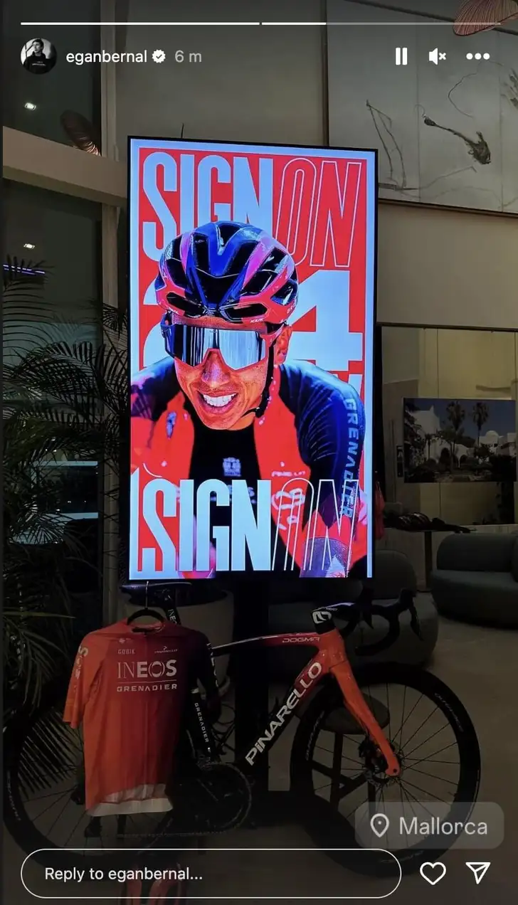 Decathlon-Ag2r La Mondiale beet vorige week de spits af. Vandaag is INEOS Grenadiers aan de beurt, alleen was het helemaal niet de bedoeling om de nieuwe shirts al te presenteren. Egan Bernal heeft zijn fans namelijk via een verhaal op Instagram per ongeluk een glimp laten opvangen van het nieuwe shirt.