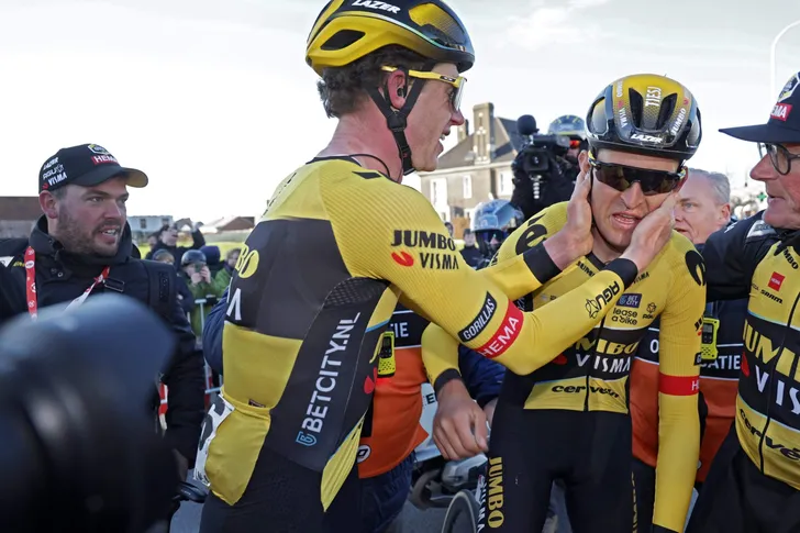 Het is de opmaat naar een uitstekend voorjaar waarin de ploeg alle Vlaamse semiklassiekers weet te winnen. Vooral door de kracht van de ploeg te gebruiken. Dat ‘samen winnen’ meer is dan een loze marketingkreet bewijzen de renners keer op keer. Afzonderlijk van elkaar vroegen we Benoot en Van Hooydonck naar de kracht van Jumbo-Visma.