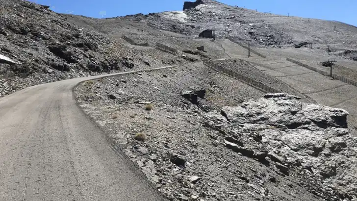 In Spanje is die mogelijkheid er wel, want in Andalusië loopt er een verharde weg (zie foto) omhoog naar de onherbergzame Pico Veleta, op 3384 meter hoogte.