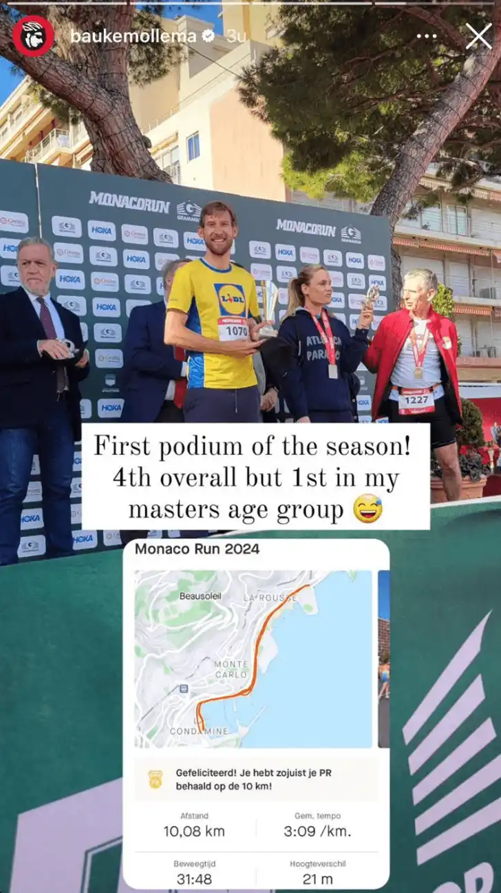 Dat bewees hij afgelopen weekend bij de Monaco Run in zijn huidige woonplaats. Op de 10 kilometer werd hij vierde in het overallklassement, maar op zijn Instagram grapt hij dat hij z'n eerste podium van het seizoen binnen heeft, want hij won in de masters categorie.