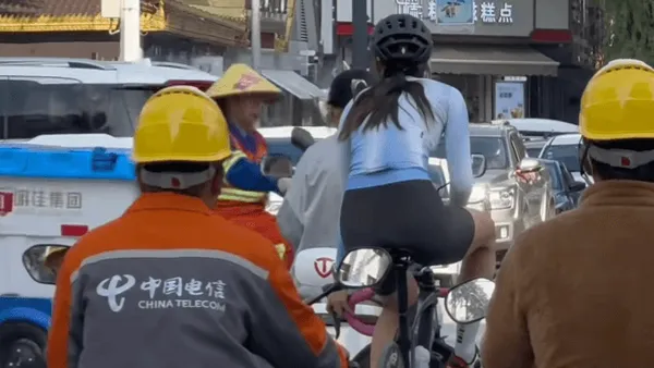 Ze staat op een megadruk kruistpunt voor het stoplicht te wachten zonder voet aan de grond te zetten. In plaats daarvan gebruikt ze die voet voor de surplace, door haar met haar wielerschoen over het voorwiel te gaan. Nou ja, bekijk de beelden zelf maar. Knapt toch? Wie doet dit haar na?