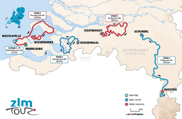 Terwijl de meeste aandacht deze week uitgaat naar het Critérium du Dauphiné, start vandaag de enige Nederlandse meerdaagse profkoers. Van woensdag 5 juni tot en met zondag 9 juni vormen Zeeland, Brabant en Limburg het strijdtoneel voor in de ZLM Tour (2.1), waarin vooral sprinters en tijdrijders aan hun trekken komen.