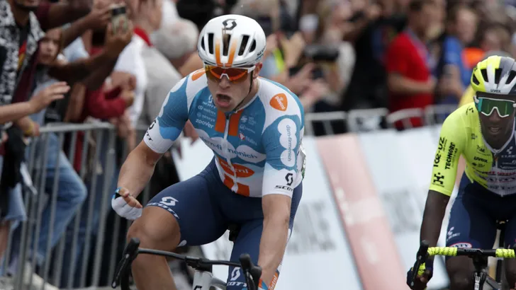 In de ontregelde sprint zette Casper van Uden als eerste aan. En hoe! De 22-jarige Nederlander van Team dsm-firmenich PostNL poefte weg van iedereen en behaalde met overmacht zijn derde zege van het seizoen. De Rus Gleb Syritsa wist op enkele milimeters Gerben Thijssen, die lang ingesloten zat, te kloppen voor plek twee.
