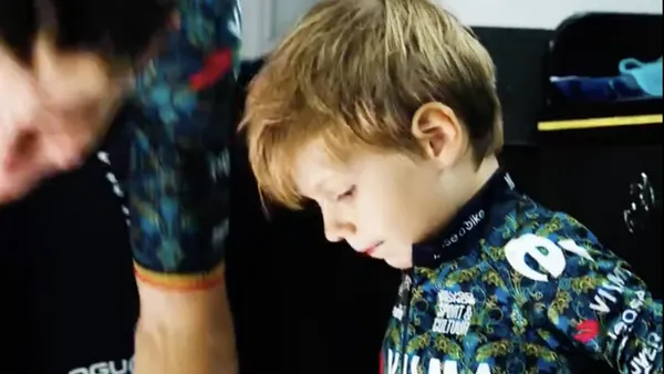 Georges kreeg vervolgens een rondleiding in de hypermoderne bus van Visma-Lease a Bike. Hij kreeg ook het gloednieuwe truitje (gemaakt voor de Tour) cadeau, uiteraard in een kindermaat. De beelden kan u hieronder bekijken: