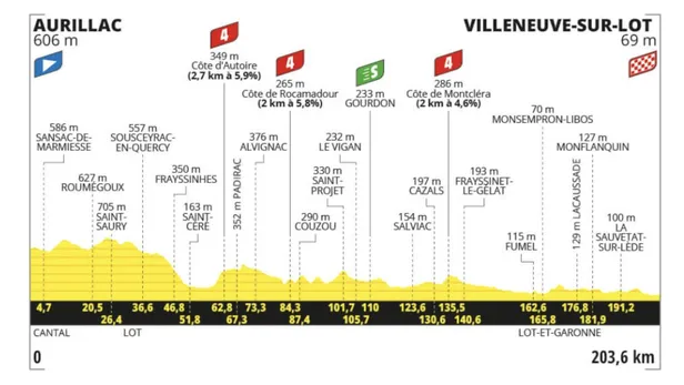 De beginfase is dus lastig voor de sprinters, maar de tweede fase van de etappe geeft de sprintersploegen kans om te formeren en jacht te zetten op de vluchters. “In twee vergelijkbare etappes naar Villeneuve-sur-Lot slaagde de kopgroep er echter in om de achtervolgers op afstand te houden.”