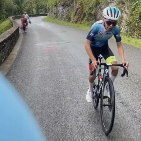 Maar ook toen Terpstra meer dan 400 watt - te zien op het schermpje van z'n fietscomputer - ging rijden op het klimmetje gaf de jonge Fransman niet af. Het korte filmpje dat hij op Instagram zette, kreeg dan ook als bijschrift mee: 'Dit jonge Franse talent volgde ons een tijdje op een klim van vierde categorie', met een duimpje erbij.