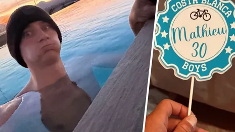 Van der Poel neemt ook graag een duik in het zwembad bij z'n Spaanse huis, maar houdt daar in januari wel z'n muts bij op. En tenslotte vierde MVDP afgelopen maand natuurlijk z'n dertigste verjaardag. Hij kreeg een mooi aandenken van z'n trainingsgroep in Spanje... (hij vertelde eerder al dat dertig worden 'm best wat deed, het was een wake-up-call).