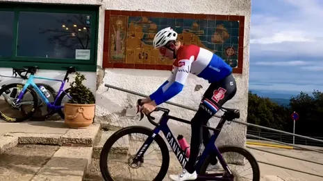 Del Grosso is net als ploeggenoten Mathieu van der Poel en Puck Pieterse iemand die wel van een lolletjes en wat spelen op de fiets houdt. En dus waren we niet verbaasd toen we op Instagram een filmpje van 'm tegenkwamen waar hij een Spaanse trap (niet die in Rome...) bedwong op z'n wegfiets.