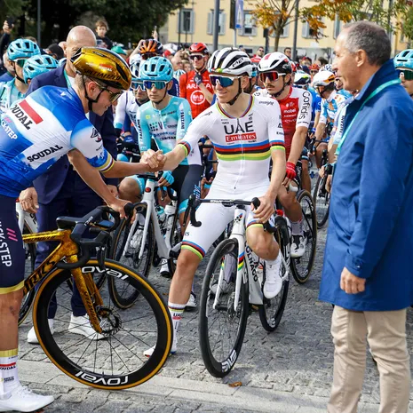 "Stel: de hele ploeg zit aan tafel en je zou er een camera opzetten. Vervolgens zou je die beelden laten zien aan iemand die niets van koers kent en hem vragen wie van al die jongens nu de beste renner ooit is. Ik denk niet ze er Tadej zouden uithalen. Zo makkelijk gaat hij met iedereen om."