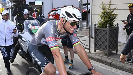 "Zijn explosiviteit is zo goed, hij zou er eigenlijk voor gearresteerd moeten worden. Maar ook in de hele finale was hij al enorm sterk, en toen hij Pogacar nog aanviel op de top van de Poggio, wist je eigenlijk ook al genoeg", zegt Thomas in zijn podcast Geraint Thomas Cycling Club.
