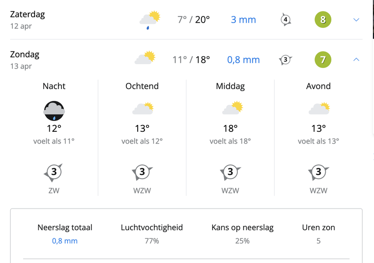 Of het daadwerkelijk gaat regenen tijdens Parijs-Roubaix is nog de vraag. Op dit moment lijkt van niet, al geldt dat enkel wanneer je zoekt op finishplaats Roubaix. Kijk je naar startplaats Compiègne, dan wordt er voor zaterdag veel en voor zondag een klein beetje regen voorspelt.