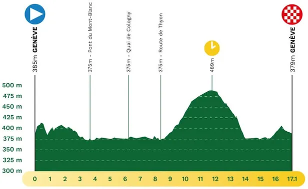 Een dag later krijgt Evenepoel een grote kans om eventuele achterstand om te draaien in de tijdrit. Zoals gezegd eindigt de Ronde van Romandië met een rit tegen de klok. Deze wordt in Genève afgelegd, is ruim 17 kilometer lang en kent halverwege een klein klimmetje. Spek naar de bek van Evenepoel.