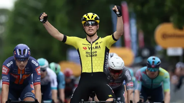 In de laatste rechte lijn zette Van Aert aan, maar het duo van Team Visma | Lease a Bike werd nog bijna verrast door Casper van Uden, die zeer vroeg aanging en Kooij dreigde in te sluiten. Dat gebeurde uiteindelijk niet, waarna Kooij er nog vrij makkelijk wist overheen te komen.