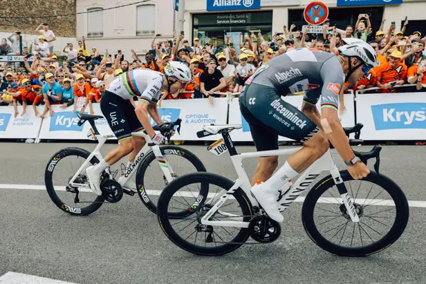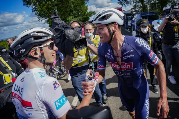 In de Ronde van Vlaanderen zijn de rollen omgedraaid. Op de laatste beklimming van de Oude Kwaremont rijdt Tadej Pogacar Mathieu van der Poel uit het wiel en komt solo aan en wint zijn eerste Ronde van Vlaanderen. Mathieu van der Poel rijdt solo als tweede over de finish.