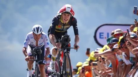 Het was een pijnlijk beeld voor Remco Evenepoel, die op het laatste zeer steile deel werd ingehaald door Jonas Vingegaard, die twee minuten na hem was gestart. Op zijn beurt dook Tadej Pogacar nog verder onder de tijd van Vingegaard, waardoor Evenepoel uiteindelijk een kleine 2.40 minuten verloor op de dagwinnaar.