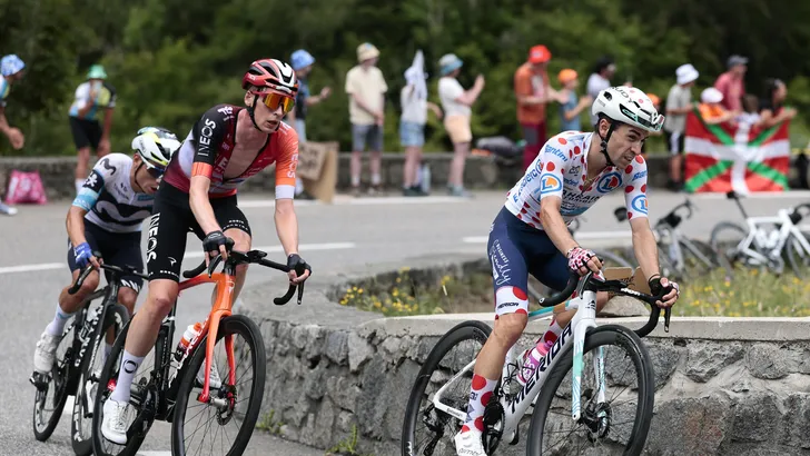 Thymen Arensman grossierde vandaag in bergpunten. Zo pakte hij de volle tien punten op de voorlaatste klim en twintig punten op de slotklim. Hij heeft er nu in totaal 48. Dat zijn er slechts twaalf minder dan Lenny Martinez, die als eerste de top van de Tourmalet ronde.