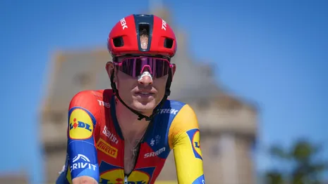 Ineens lag daar een renner van Lidl-Trek. In de beginfase van de veertiende etappe ging het razendsnel. Onder meer langs allerlei verkeersborden. 99 van de honderd keer gaat dat goed, maar één renner miste een verkeersbord: Mattias Skjelmose. De Deen ging keihard onderuit.