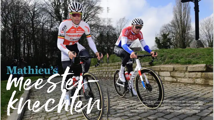 Overal waar Mathieu van der Poel start, of het nu in het veld, op de weg of op de mountainbike is, geldt hij als een van de favorieten. We vroegen zijn meesterknechten Stijn Devolder en Gianni Vermeersch om het talent van de alleskunner te duiden. Vermeersch: "Als Mathieu was gaan voetballen, dan had hij nu waarschijnlijk bij Real Madrid gespeeld."