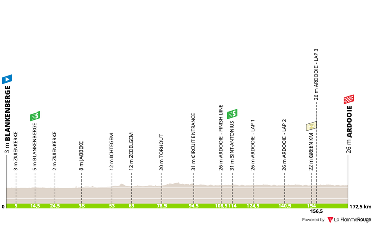 Ook op dag twee van de Renewi Tour komen de sprinters aan hun trekken. De rit van Blankenberge naar Ardooie is volledig vlak, dus niets lijkt een massasprint in de weg te liggen. Al sinds 2008 keert Ardooie terug als finishplaats in de Belgisch-Nederlandse rittenkoers. In de meest recente jaren wonnen Jonathan Milan, Jasper Philipsen (twee keer) en Tim Merlier er.