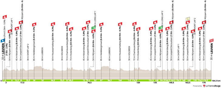 In de finale stapelen de korte hellingen in Leuven zich in rap tempo op, en dus schuilt het gevaar om iedere bocht. Dit belooft een spectaculair slot te worden van de Renewi Tour, die dus allesbehalve beslist gaat worden in de etappe naar Geraardsbergen.